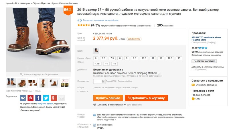 Хотелось бы поделиться с Вами впечатлениями от одной из многих покупок совершенных мной на ru.aliexpress.com/ .Правда до этого были покупки в основном электроники,ну и на пробу несколько женских вещей недорогих.Ни одного сбоя не было,все было качествнно и соответсвовало описанию и размерам,поэтому решил рискнуть,взять более дорогую вещь,тем более давно хотел поменять себе осенние ботинки,а тут наткнулся на отличный вариант замены в HECRAFTED handmade shoes .