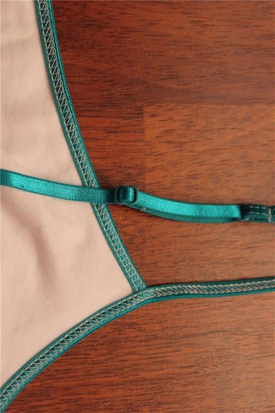Эта модель топа, впрочем, как и остальные две, имеет встроенный лиф на эластичной резинке, поддерживающий грудь. Ткань за счет спандекса тянется очень хорошо и, соответственно, также хорошо облегает фигуру. Бретельки регулируемые, можно подобрать нужную длину.