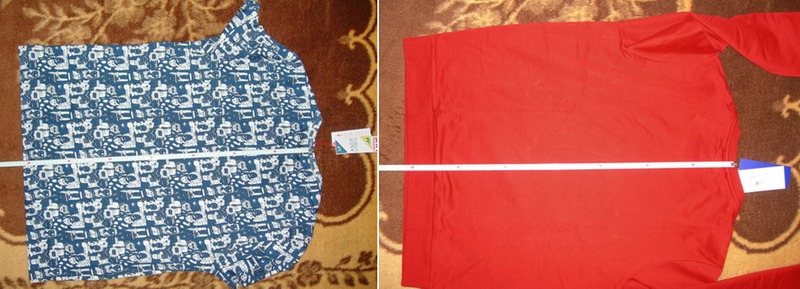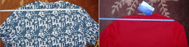 Далее следуют измерения длины изделий. Для футболки это 71,5 сантиметров (по середине спины), для толстовки - 71 сантиметр.