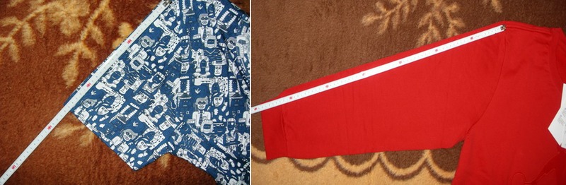Длина рукава у футболки 25,5 сантиметров, у толстовки - 68,5 сантиметров. Замер производился от плечевого шва.