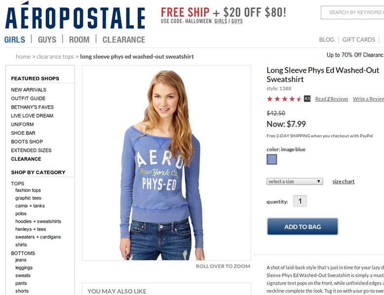 Aeropostale.com - это официальный магазин сравнительно молодой американской марки молодежной одежды и обуви, весьма популярной не только в США, но и во всем мире.
