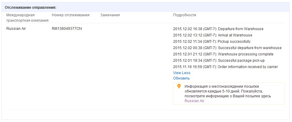 Делал заказ на алиэкспресс, в описании товара написано, что транспортная компания Russian Air, и ссылка на http://www.russianpost.ru/tracking20/English.htm. На самом сайте али трек отслеживается, что видно на скриншоте. Перехожу на russianpost, там трек не отслеживается. Каким почтовым сервисом его отследить?