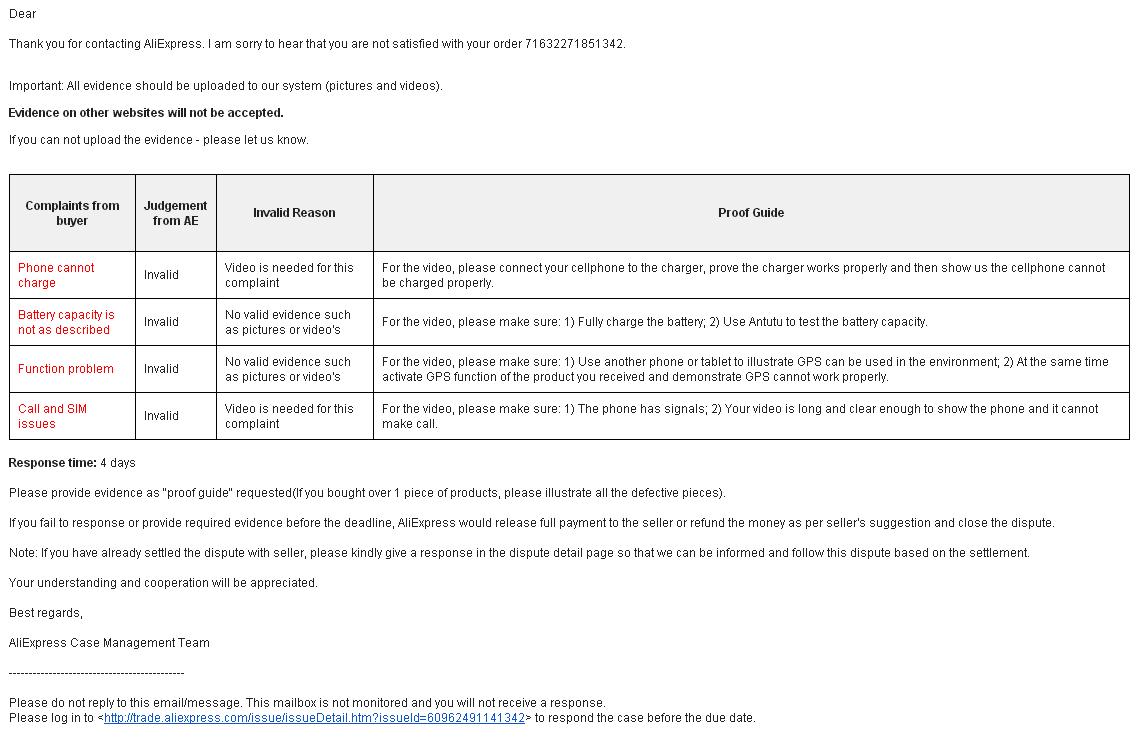 Может они даже не рассматривали видео по ссылке? Так как было предупреждение, с просьбой не заливать видеодоказательство на YouTube или Mediafire.