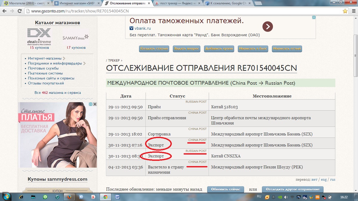 У вас одна информация по экспорту от китайской почты, вторая - от русской почты.