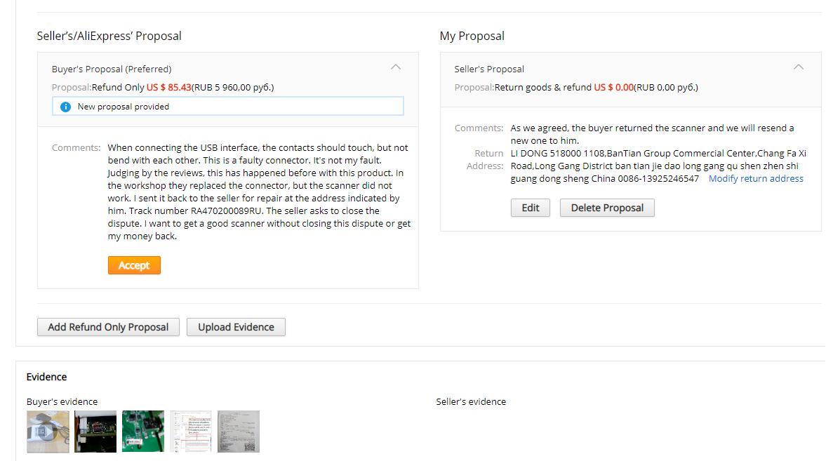 Он потом просил подтвердить, что я отправил только сам сканер. Поэтому в споре я указал возврат не всей суммы, а почти всей.