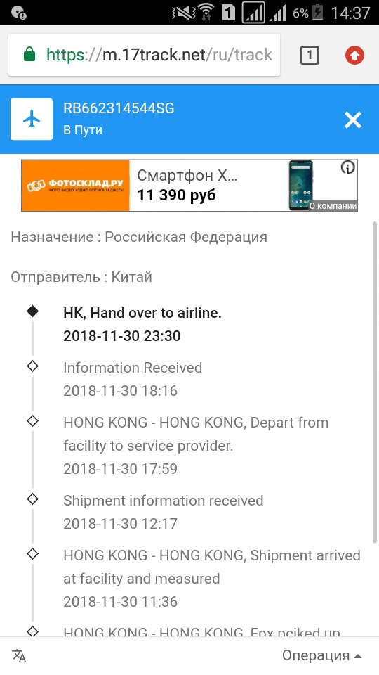 Какой смысл идти на почту,если трек является отслеживаемым.Проверял трек через почту сингупура(оттуда он идет),написано,что трек номер не зарегестрирован на почте,получается он не дошел до Сингапура