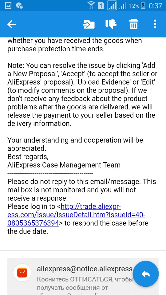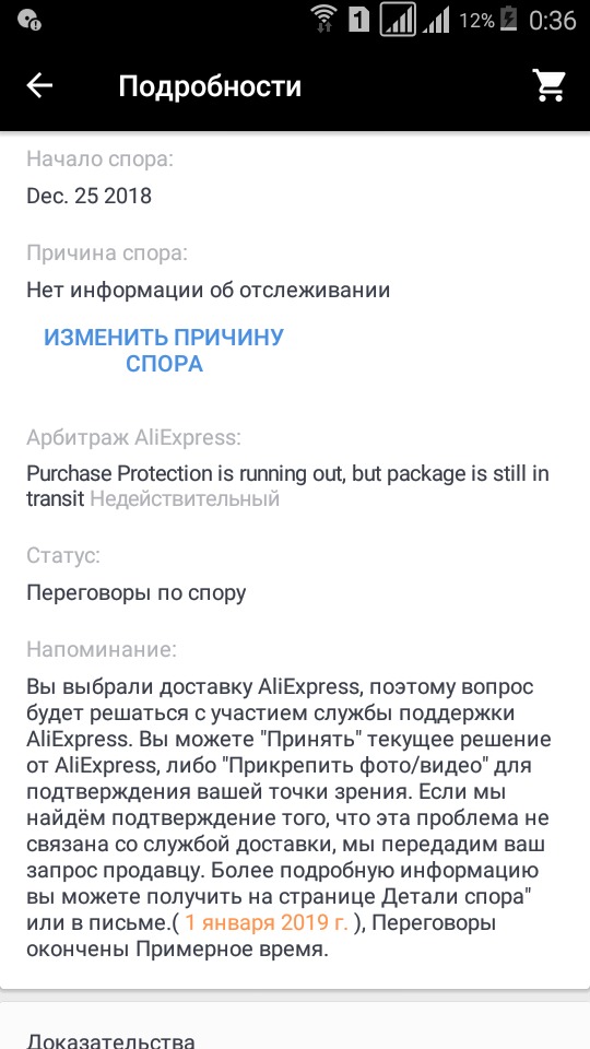 На втором скрине чётко видно, что спор открыт по причине: "Срок защиты истекает, но посылка ещё в пути." Али ваши доказательства отвергает, что подтверждается записью "Invalid (недействительно)." Короче, очередной горе-спорщик, который после проигранного спора будет кричать на каждом углу, что Алиэкспресс - это лохотрон и т.д и т.п. Ну и, как следствие, забанят на Али - будет кричать ещё больше.