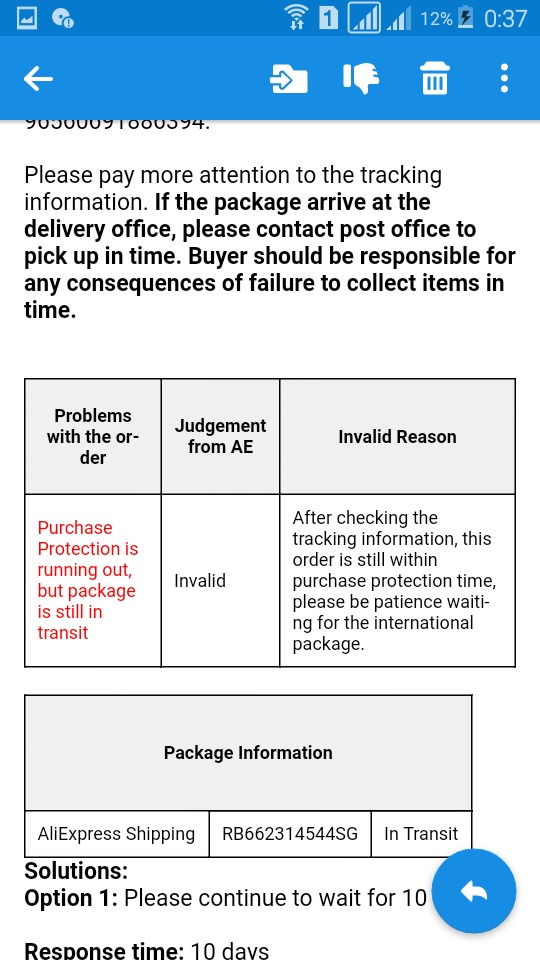 Заказал телефон 24 ноября,до 30 ноября все хорошо отслеживалось,но потом перестало отследиваться и по сей день.Отрыл спор по причине "Нет информации и доставке" (до конца защиты еще 24 дня).На что мне служба алиекспресс ответила:(приложу скрины).Что делать дальше? Мне вернут деньги или придется ждать дальше до окончания срока защиты?