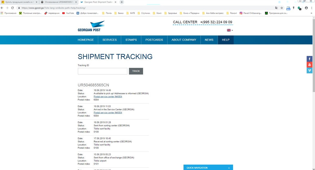 Посмотрел - не понятно откуда там вообще Казпочта взялась - никаких следов. Интересно другое что на сайте Haypost ваш трек при проверке на грузинском сначала выдал ошибку, на английском - все норм, а потом уже и на грузинском все норм стало. Попробую проверить на других треках, если в этом причина - переключу на англ, а то у вас по треку уже 8 статусов, а здесь на сайте - ни одного.