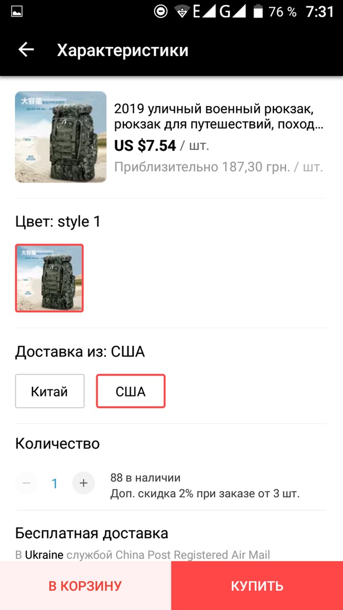 Цена товара с отправкой из США меньше цены с отправкой из Китая