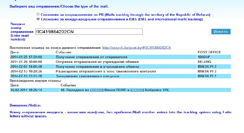 Будет все ясно, когда увидите куда дальше посылка идет...