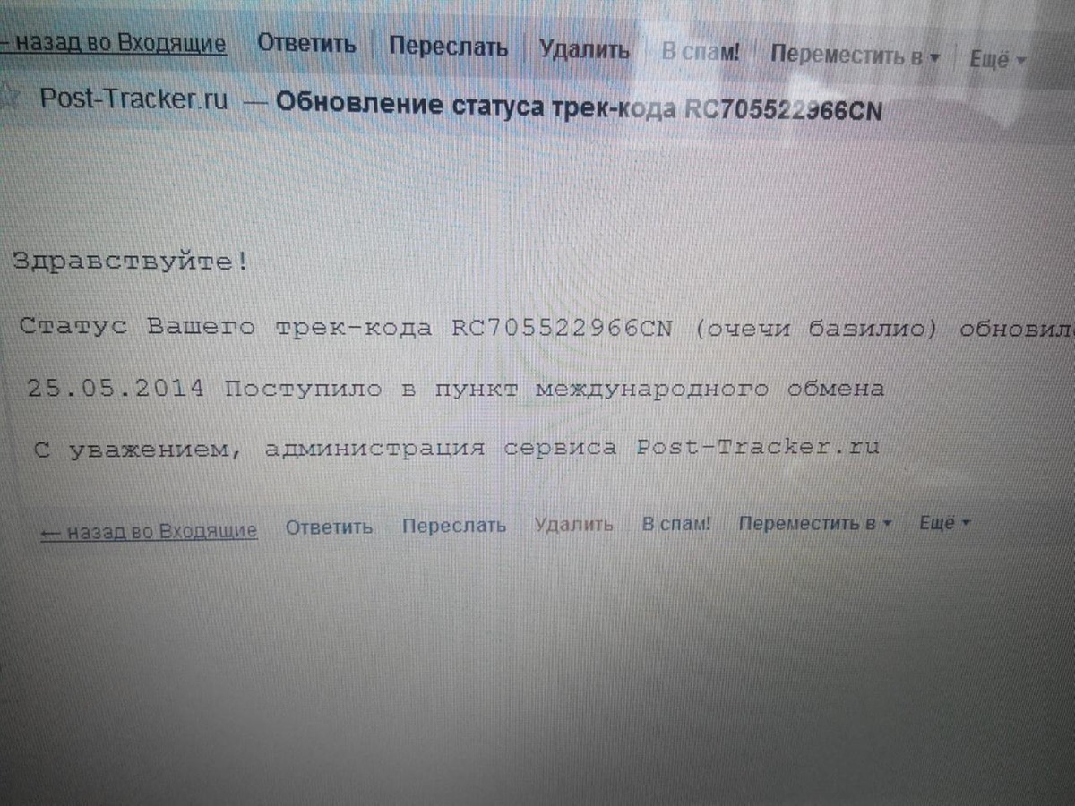 Статус Вашего трек-кода RC705522966CN (очки ) обновился: