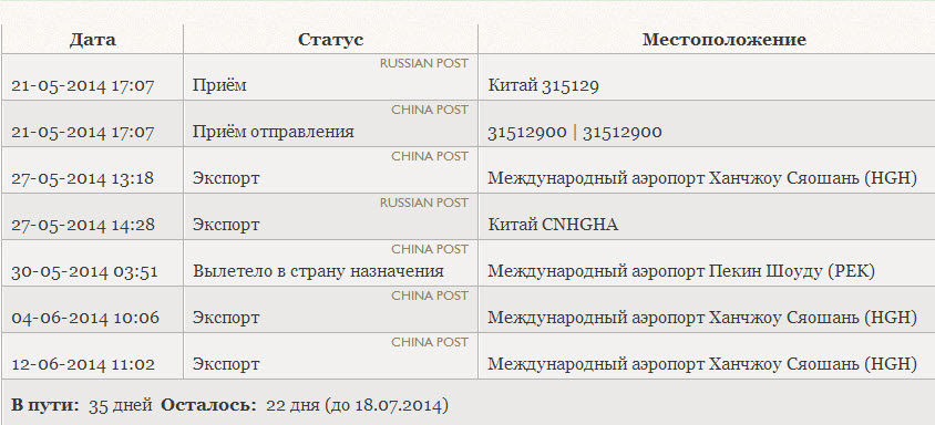 Самый первый заказ. Даже некоторые последующие уже на терр.РФ, а что-то уже пришло
