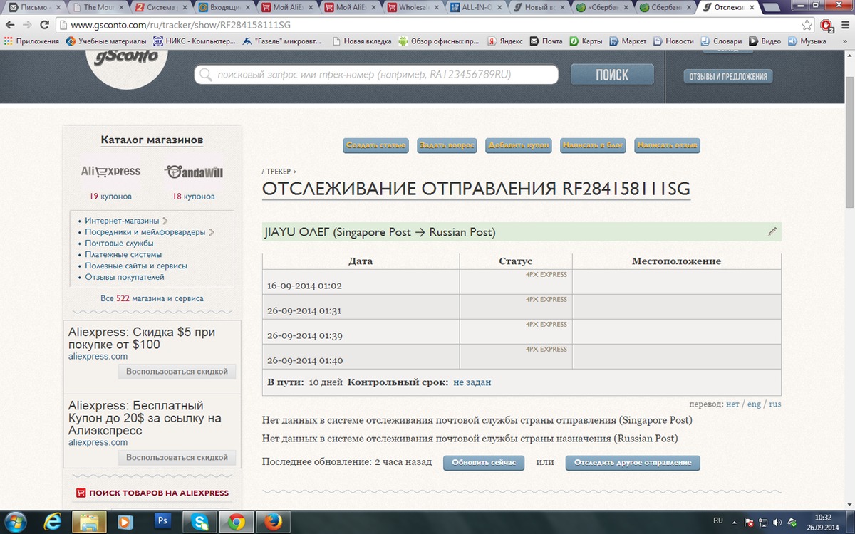 Здравствуйте! Все началось с заказа в магазине Shenzhen Dream Mall Technology Co., Ltd, оплатил 14 сентября, 15 сентября продавец дал трек RF282218529SG, который не отслеживался, после угроз в адрес магазина продавец сказал, что заказ потерялся и он приносит свои извинения. Попросил меня закрыть диспут, обещал подарки и скидки. Сегодня прислал мне фото моего заказа и новый треккод RF284158111SG. И вот какая странность - при добавлении этого трека, начал менять статусы старый трек, а время в пути заказа по новому треку- 10 дней. Если кто-нибудь сталкивался с такой проблемой подскажите в чем дело!