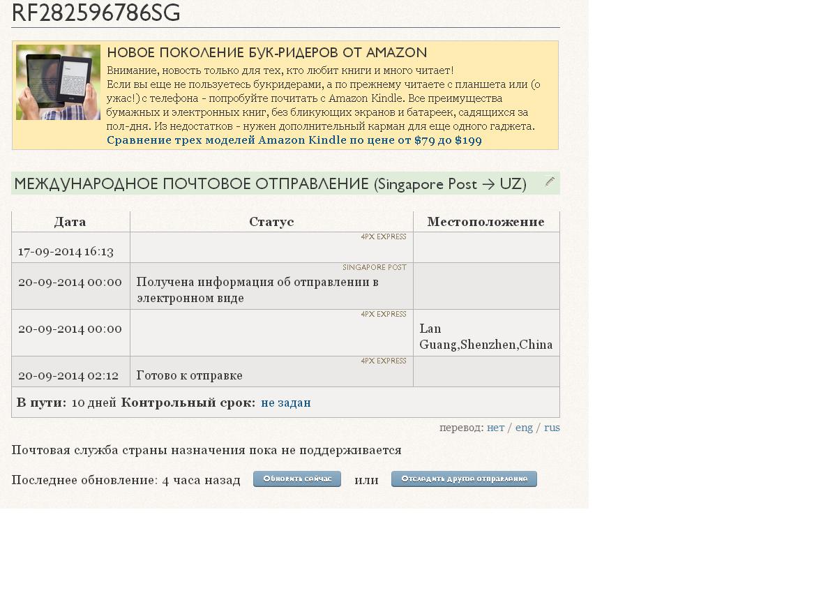 Ваша посылка принята к доставке компанией 4PX и готова к отправке в Сингапур. Ждите спокойно.