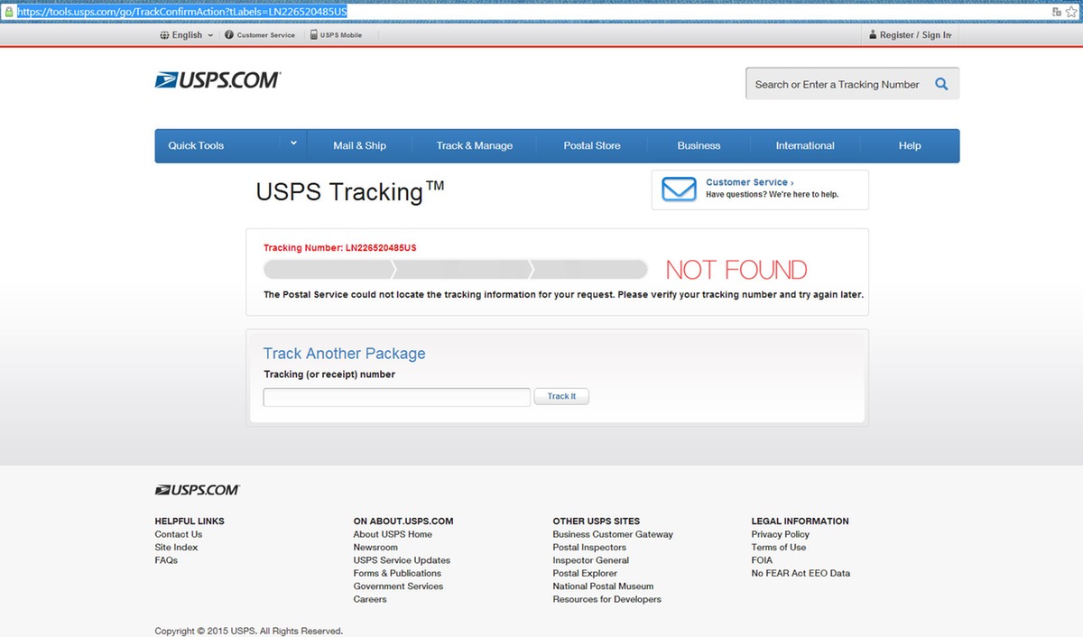 Купила я 19января на Ebay бальзам для губ, продавец через несколько дней дал трек, прошло 10 дней. Трек не отслеживается ни здесь, ни на сайте USPS. Номер трека LN226520485US