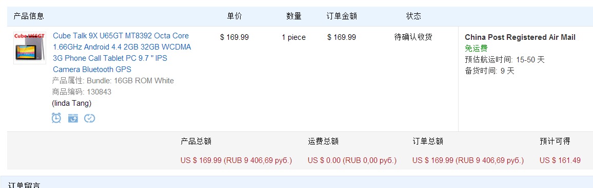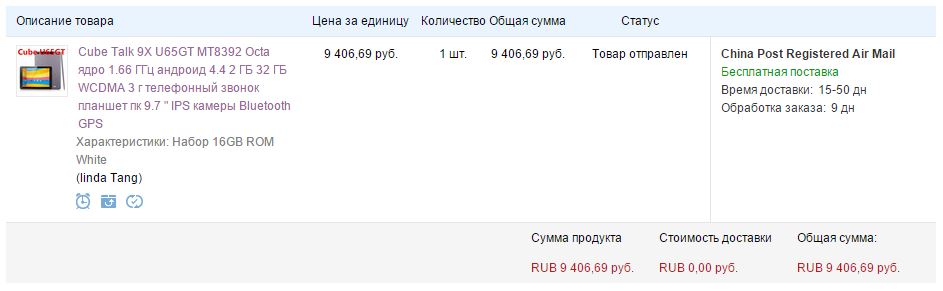 В начале ссылка на товар. Это планшет. Предположим что заказывали на 16GB стоимость его 169,99$, выбираем страну доставки 4,21$ ( это цена доставки в РБ ) для другой страны может быть другая цена доставки