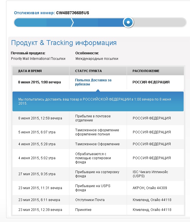 USPS. Мы попытались доставить ваш товар в РОССИЙСКОЙ ФЕДЕРАЦИИ.