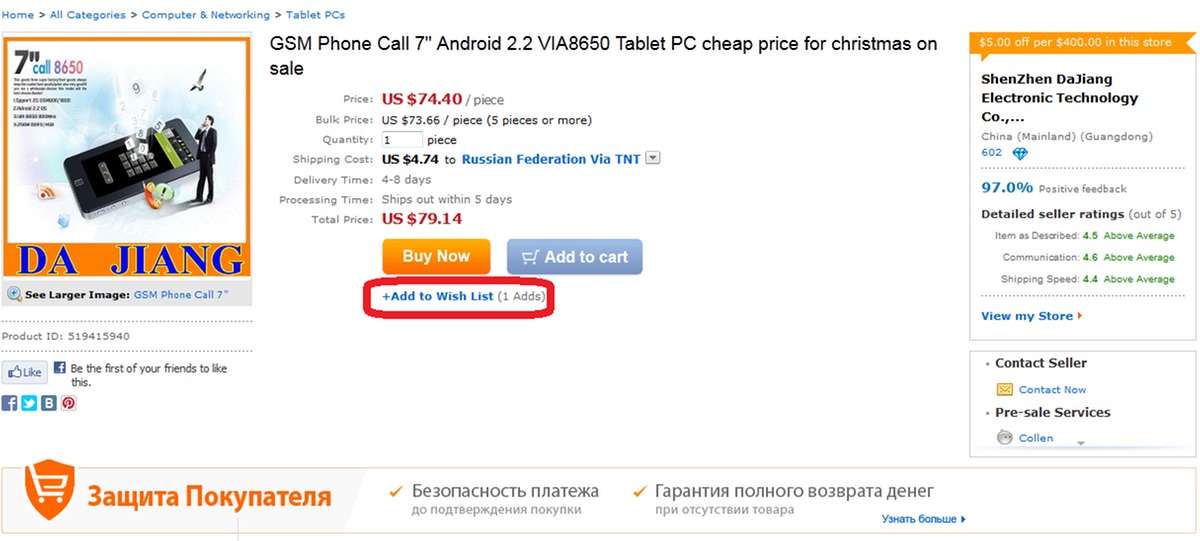 - Защита покупателей. Можно оплатить любым способом оплаты, из предоставляемых торговой площадкой и защитить свои деньги, т.к. они передадутся продавцу только в том случае, если Вы подтвердите, что получили посылку и довольны товарами.