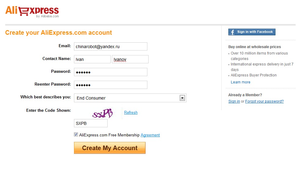 Начнем с регистрации на сайте торговой площадки Aliexpress.com.