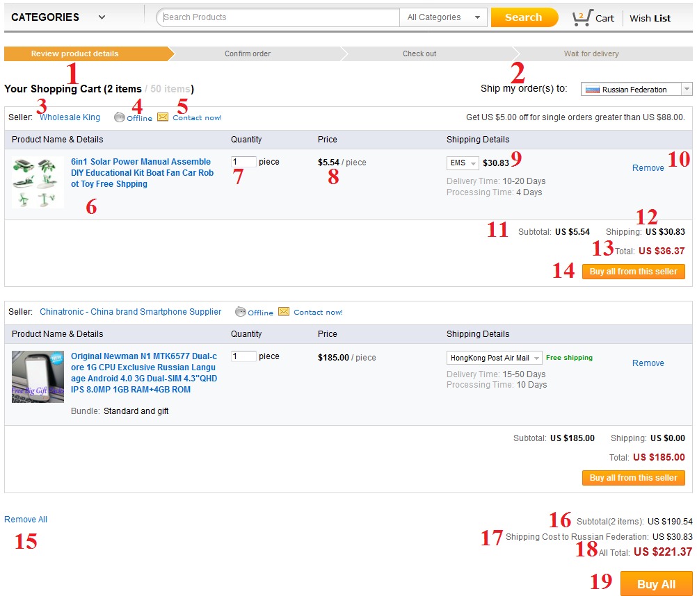 - Возможность выбора товара по лучшей цене, из-за большого количества товаров от разных продавцов.