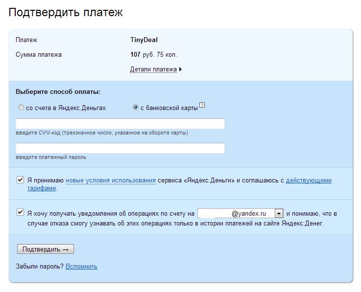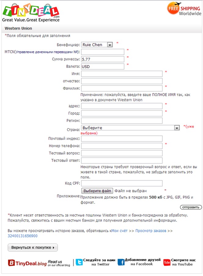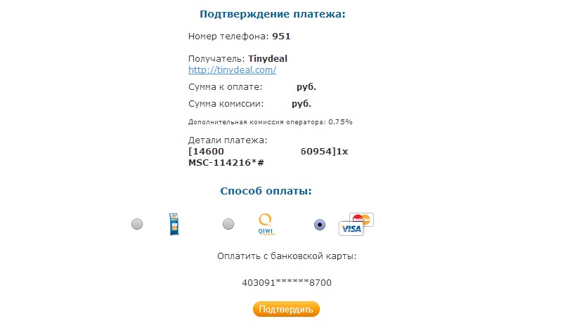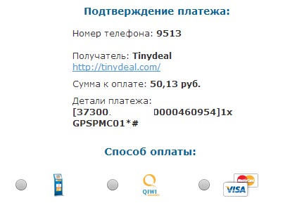 Я платил через интернет qiwi.com я не жалуюсь все нормально пришло сам tinydeal.com отправляют если товар испорченный к тому же у меня не раз не приходило нечего сломанного. У этого сайта мне понравилась что у него бесплатная доставка, низкие цены.
