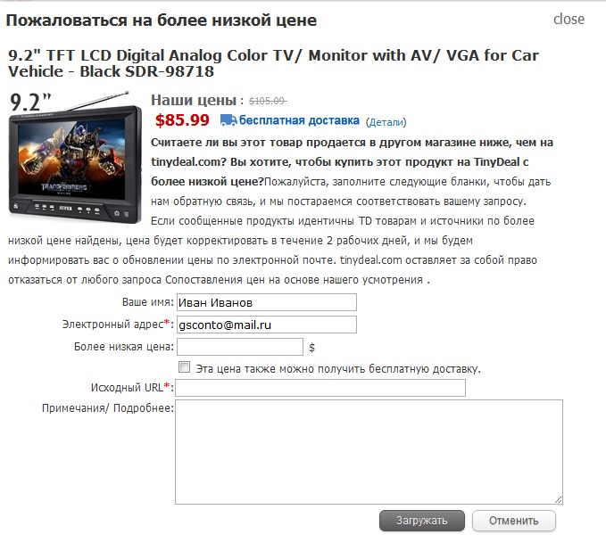 - Служба поддержки: [email protected] и http://help.tinydeal.com/ru/contact-us
