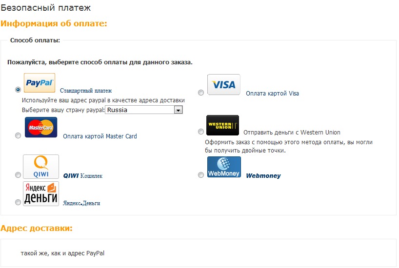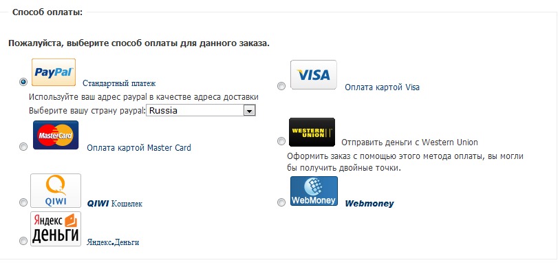 Другие способы оплаты: Paypal, Яндекс.Деньги, QiWi, Webmoney, денежные переводы Western Union.