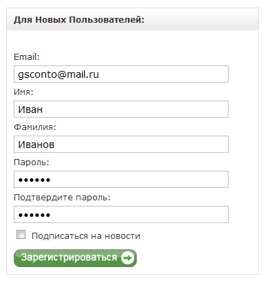 Левая колонка предназначена для авторизации уже зарегистрированных пользователей, правая - для регистрации. Как раз нам и нужна правая.