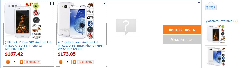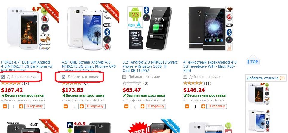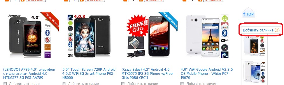 Не так давно у магазина появилась новая и достаточно нужная функция "Сравнение товаров". Чтобы можно было легко сравнить характеристики 2 (и более) одинаковых товаров. Чтобы воспользоваться этой функцией необходимо поставить галочки рядом с надписью "Добавить отличие", как у первого, так и второго товара: