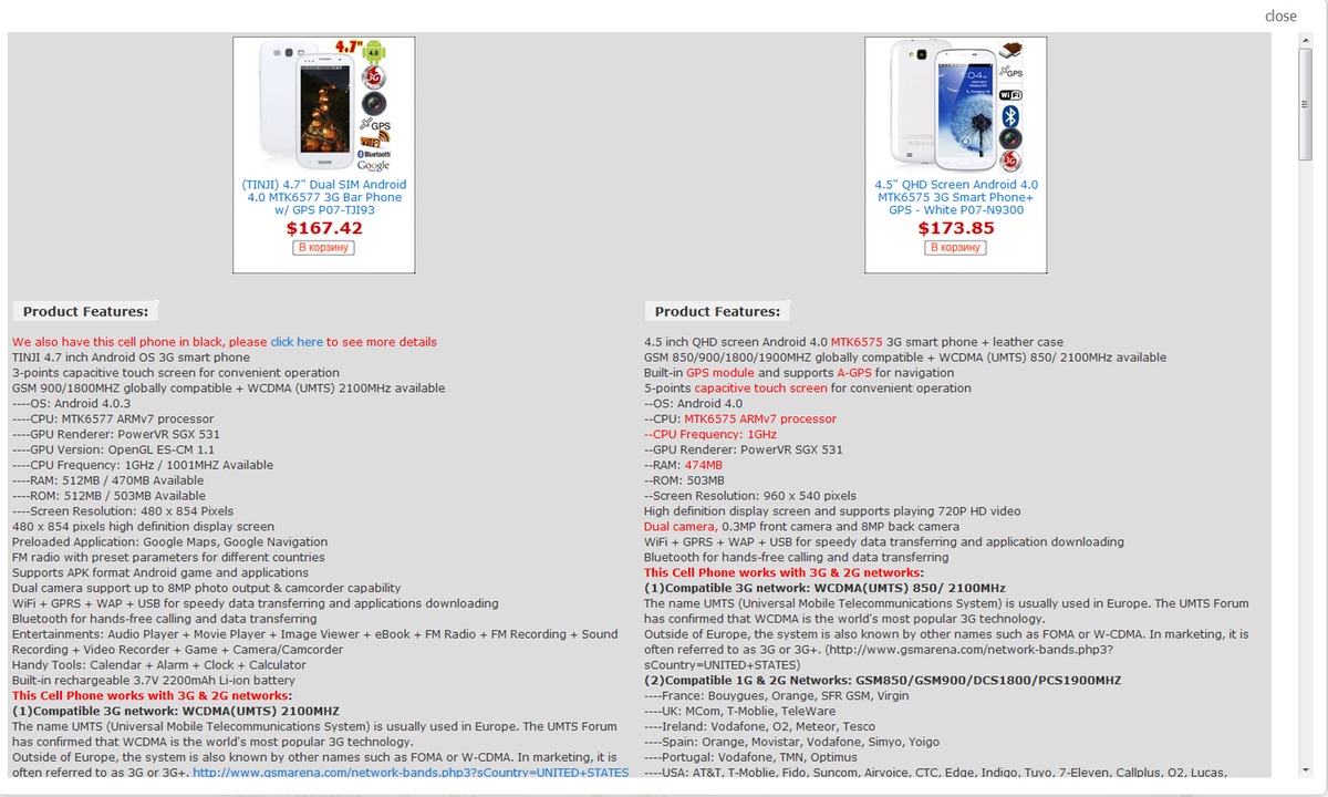 Появится вот такая форма. Здесь мы можем убрать любой товар со сравнения: