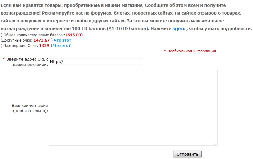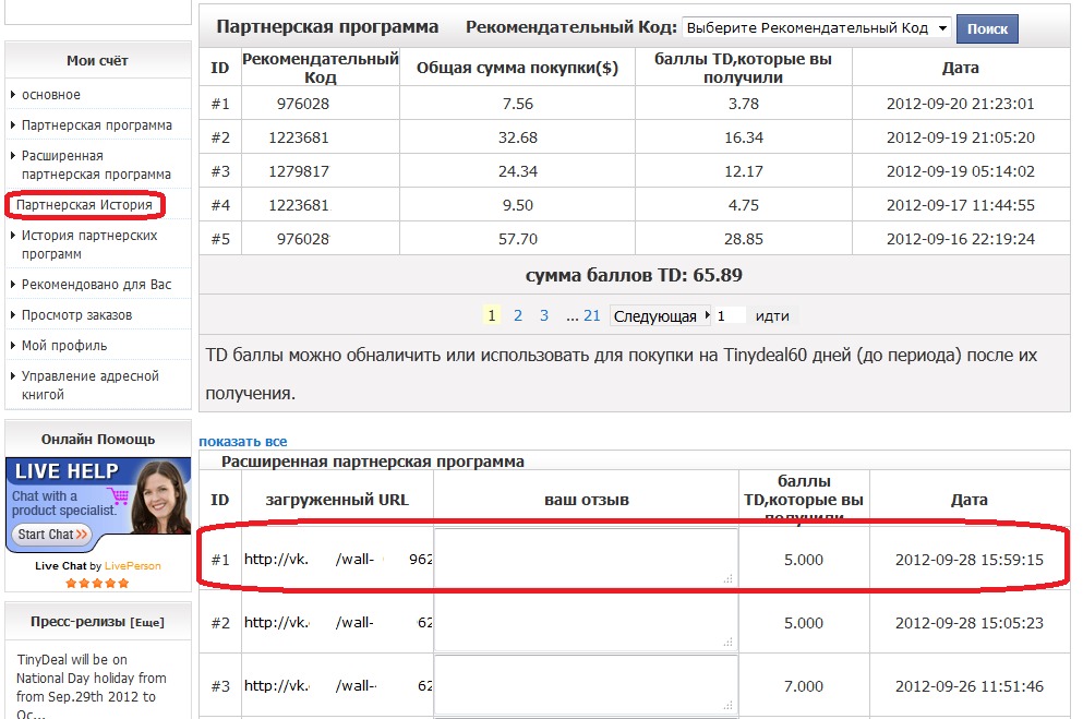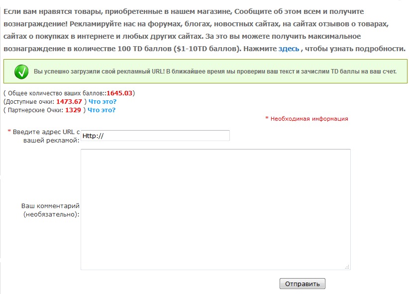 Как только ссылку проверит менеджер, ответственный за эту работу, Вам начислят TD баллы. А на странице "Партнерская История" (он все там же находится в левом боку), появится сообщение об добавлении баллов.
