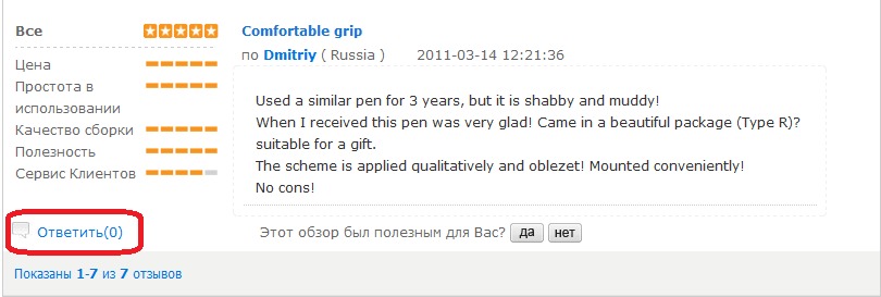 В "обзор отзыва" пишется короткий заголовок, допустим, "MP3 плеер" или "Телефон", а в нижнее поле вводится сам отзыв. Также мы можем выставить оценки, просто выбираем кол-во звездочек.